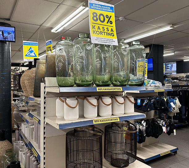 We hebben een unieke partij in handen: een complete uitverkoop van het luxe woonmerk Rivièra Maison. Deze partij is verkrijgbaar in beide filialen, in Waalre en Oploo.