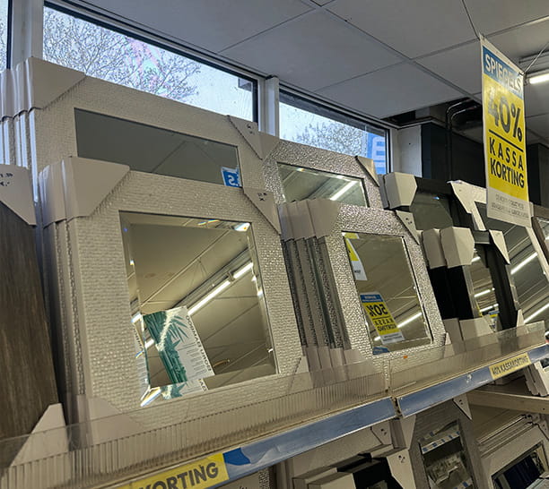 Deze partij spiegels is verkrijgbaar in onze winkel in Waalre. Kom langs en bekijk het actuele aanbod in de winkel.