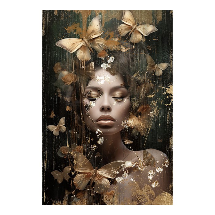 Glasschilderij – Vrouw Met Vlinders – 120 x 80 cm