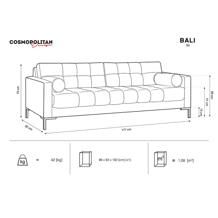 Met een compacte maar comfortabele opstelling van 177 × 92 × 78 cm is de Tokyo bank ideaal voor kleinere woonkamers, lounges of woonhoeken waar je stijl en comfort wilt combineren zonder in te leveren op zitruimte. De zachte kussens en royale zitbreedte bieden een uitnodigend zitcomfort, ideaal voor ontspannen avonden, gezellige gesprekken of gewoon lekker loungen.