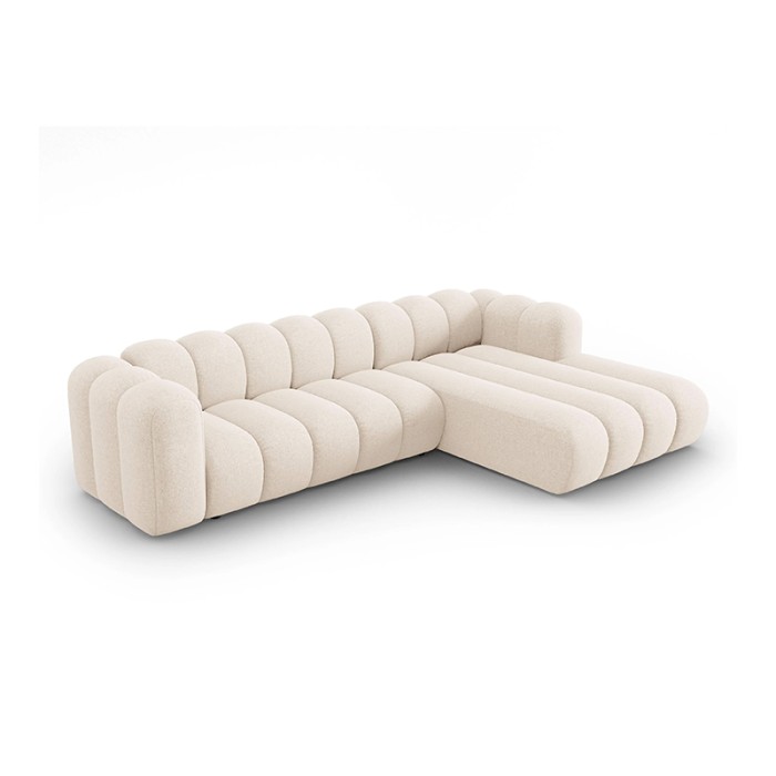 Micadoni 4-zits Hoekbank Luvine – Rechts (Lichtbeige Polyester)