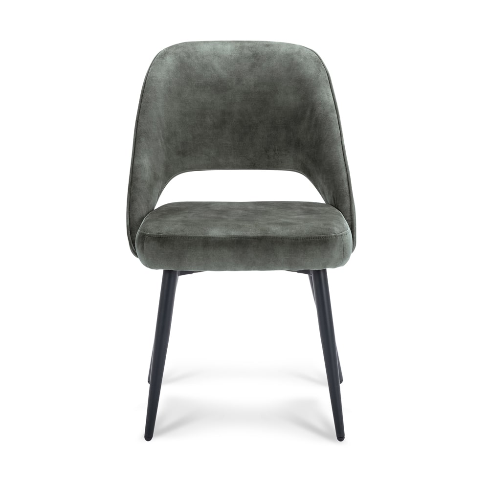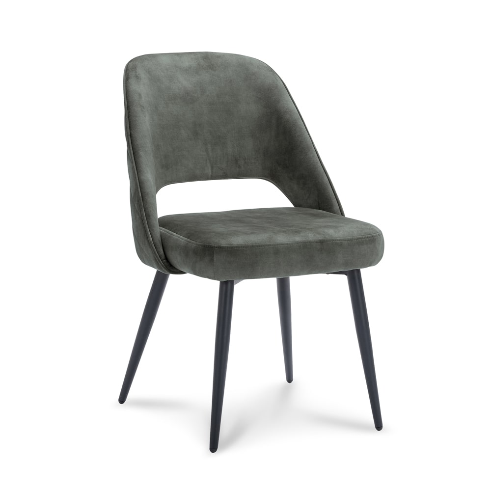 De Lusto stoel heeft slanke poten van zwart metaal die zorgen voor een stevige en stabiele basis. De combinatie van de Adore stof en de zwarte metalen poten geven de stoel een moderne en industriële uitstraling.