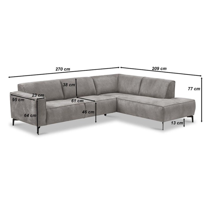 Haluta Hoekbank Alkmaar – 270 x 209 x 77 cm – Grijs – Rechts