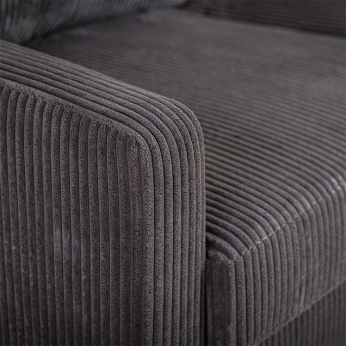 De bank is bekleed met een zachte ribstof, wat zorgt voor een comfortabele zit en een trendy uitstraling. De stevige kussens bieden goede ondersteuning, waardoor je heerlijk kunt ontspannen na een lange dag of gezellig samen kunt zitten met familie en vrienden.