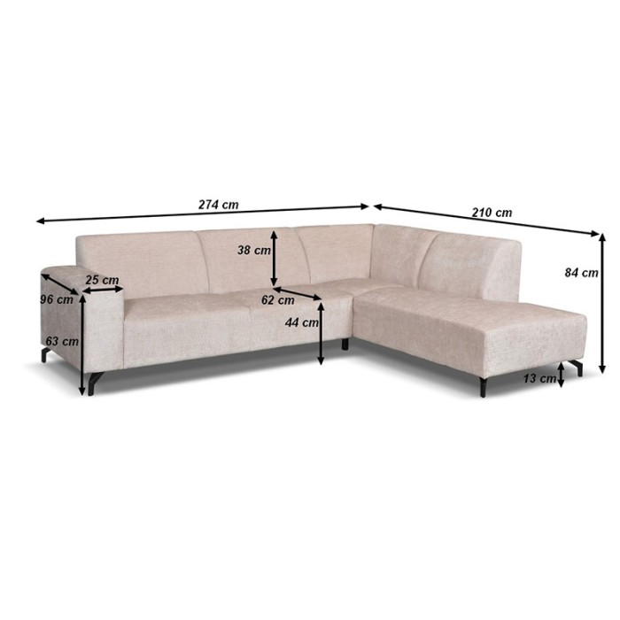 Haluta Hoekbank Lelystad – 274 x 210 x 84 cm – Beige – Rechts