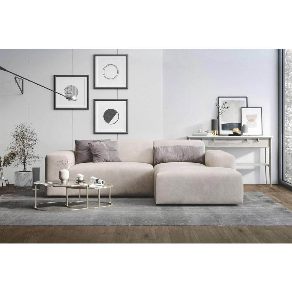 Met de Hoekbank Levi Rechts in Velvet Beige voeg je een stijlvolle en comfortabele eyecatcher toe aan jouw woonkamer.