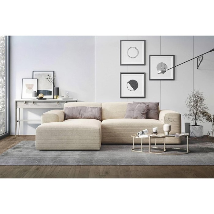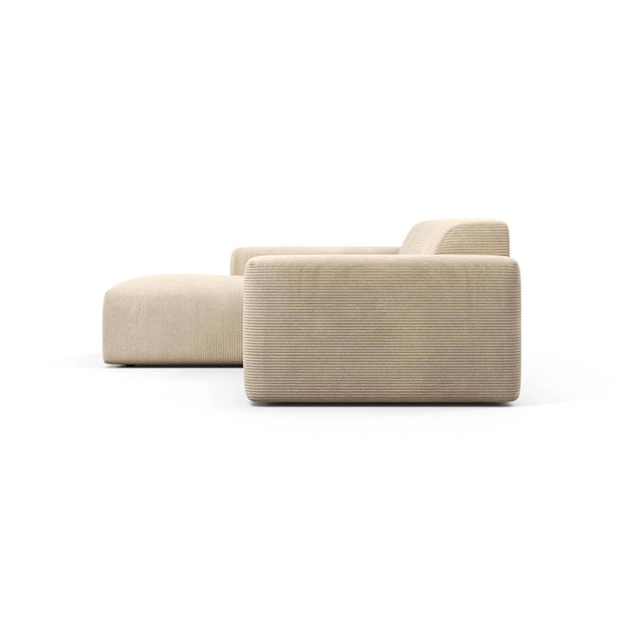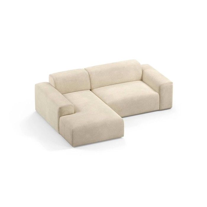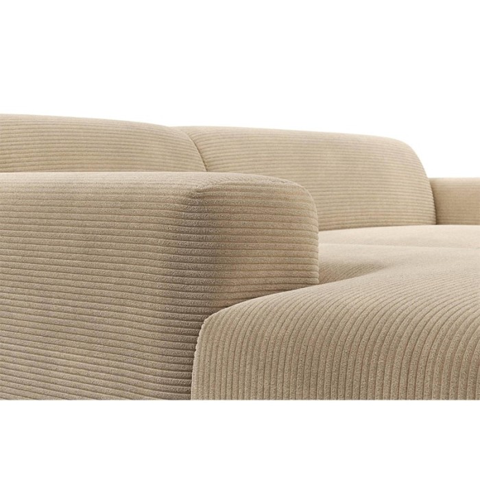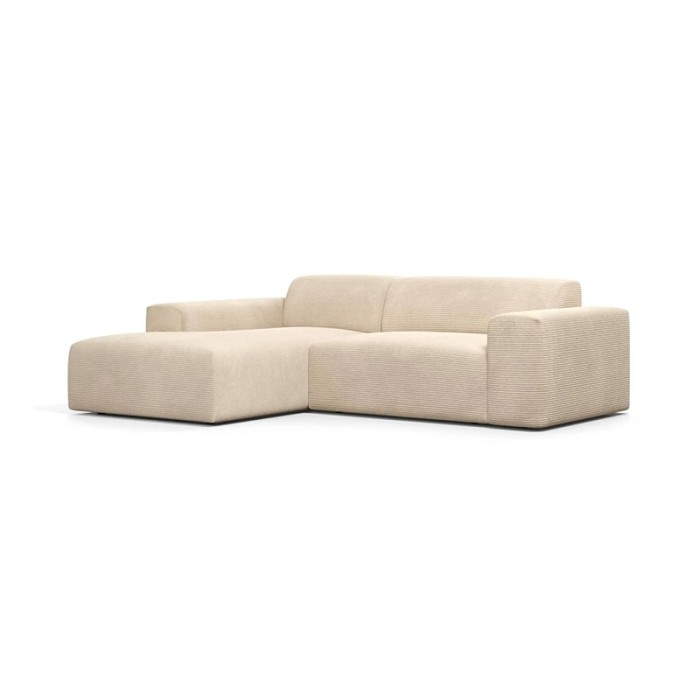 De hoekbank Esmee in crèmekleurige ribstof biedt een ideale combinatie van comfort en verfijning. De zachte ribstof in een elegante crèmekleur geeft de bank een tijdloze uitstraling die perfect past in verschillende interieurstijlen. Het ruime ontwerp zorgt ervoor dat je met het hele gezin of je gasten comfortabel kunt zitten, terwijl de chaise longue aan de linkerzijde extra ontspanning biedt.