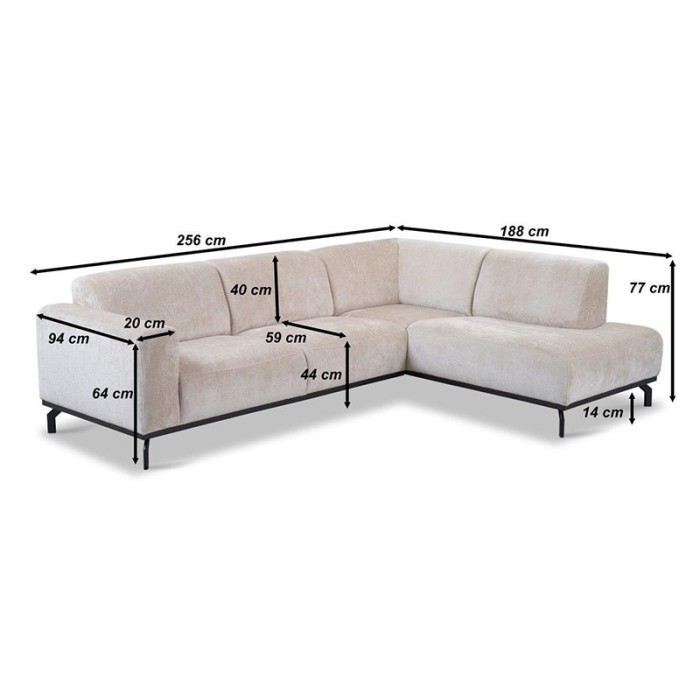 Haluta Hoekbank Sittard – 256 x 188 x 77 cm – Beige – Rechts