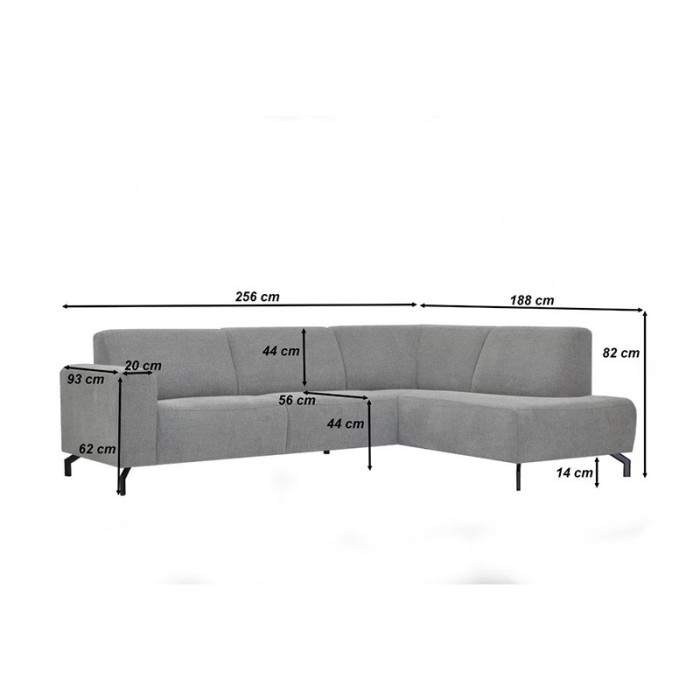 Haluta Hoekbank Zwolle – 256 x 188 x 82 cm – Grijs – Rechts