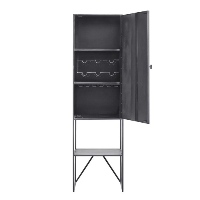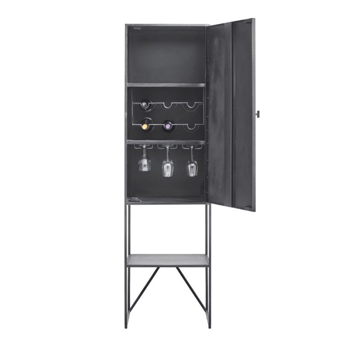 De kast beschikt over één deur en één open vak, waardoor je zowel gesloten als open opbergruimte hebt. In het open vak kun je bijvoorbeeld woonaccessoires, servies of een paar decoratieve flessen plaatsen. De robuuste metalen constructie maakt de kast stevig en duurzaam, terwijl de matte afwerking zorgt voor een moderne, tijdloze uitstraling.