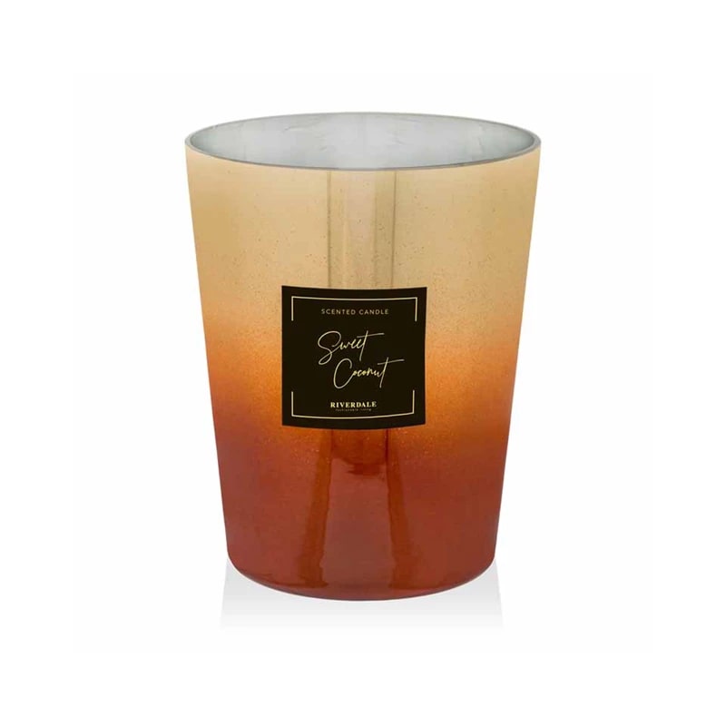 De luxe geurkaars in pot Sweet Coconut 16cm heeft een tijdloze uitstraling en is daardoor een perfecte aanvulling in ieder interieur. De kaars is gegoten in een glazen pot met kleurverloop van goud naar brique. De geur laat zich het best omschrijven als warm en tropisch, met kokos en vanille die de boventoon voeren. Met ruim 1kg kaars, 3 lonten en tot wel 66 branduren, kun je heerlijk lang genieten van deze geurkaars in pot.