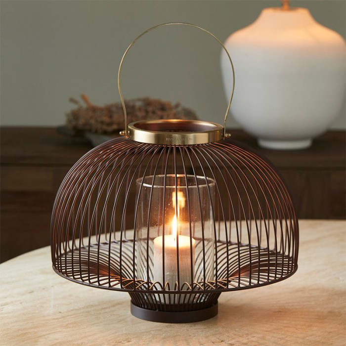 Rivièra Maison Yulio Lantern – Stijlvolle Lantaarn van IJzer & Glas – Ø40 cm – Bruin