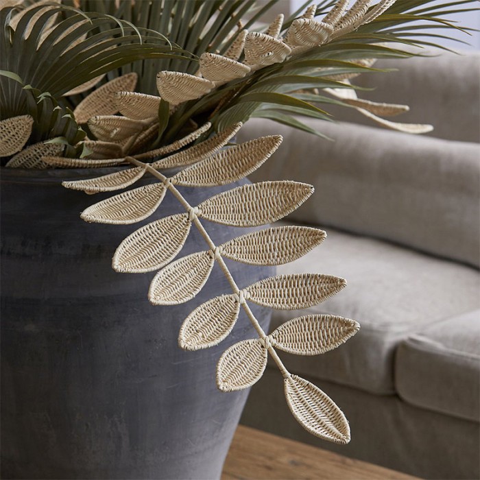 Breng een natuurlijke en rustgevende sfeer in huis met de Botanic Leaf kunsttak van Rivièra Maison. Deze decoratieve tak is met de hand gevlochten uit hoogwaardig rotan, wat zorgt voor een authentieke uitstraling en een warme, organische touch in je interieur.