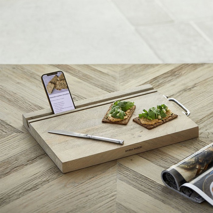 Rivièra Maison RM Tablet Holder Chopping Board – Snijplank van Mangohout met Tablethouder – 45,5x30 cm – Naturel
