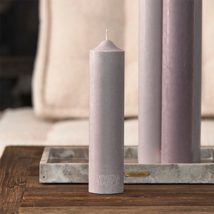 Rivièra Maison RM Rustic Pillar Candle – Stompkaars van Stearine – Ø7 cm – Grijs – 30 cm Hoog