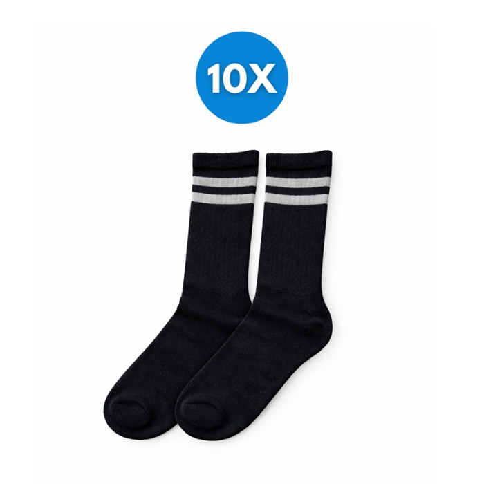 De set bestaat uit 10 paar sokken, waardoor je altijd voldoende voorraad hebt. Verkrijgbaar in verschillende varianten, zoals effen of met strepen, in kleuren zoals zwart en wit.